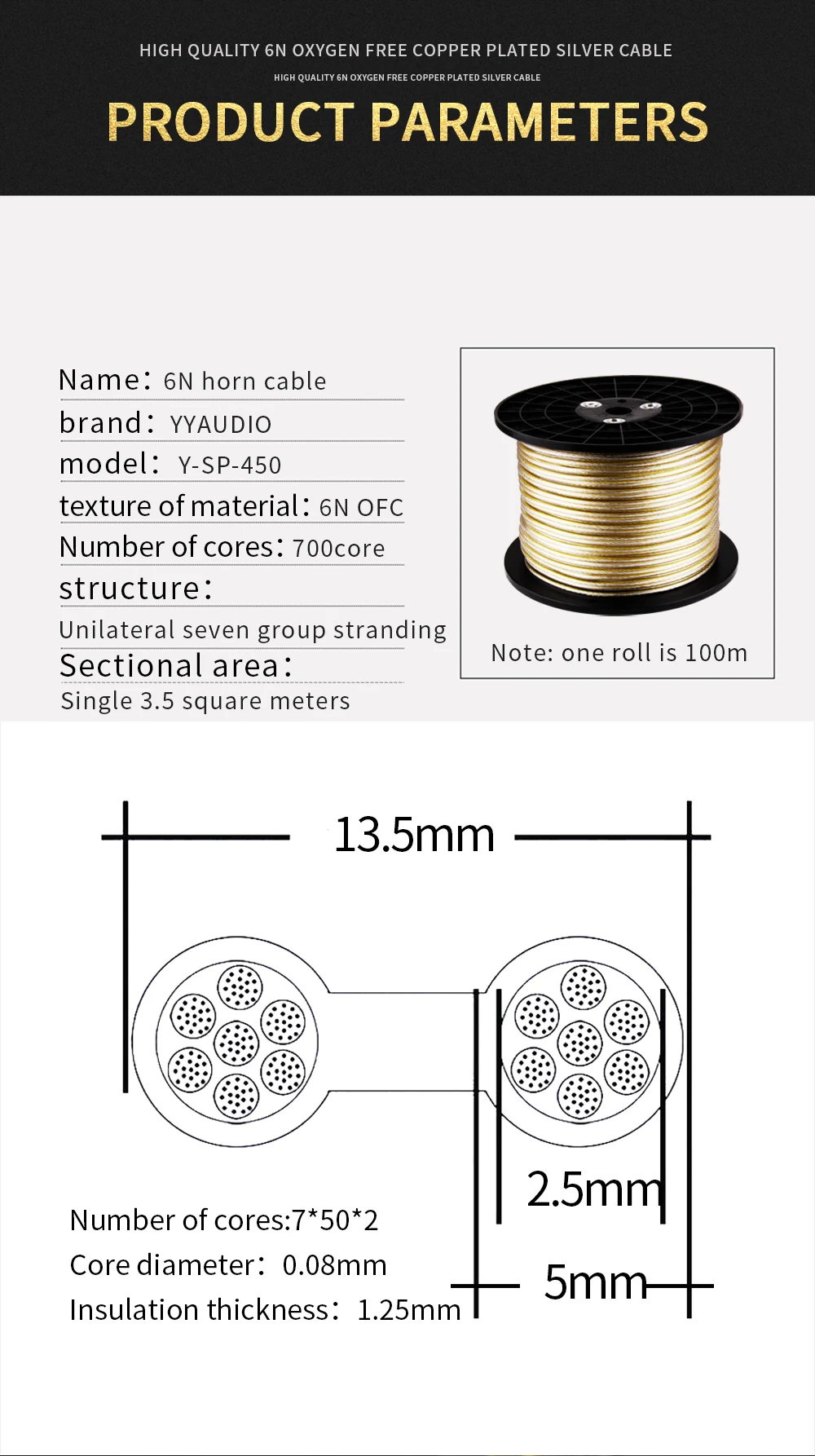 Texture of material: 6N OFCNumber of cores: 700corestructure: