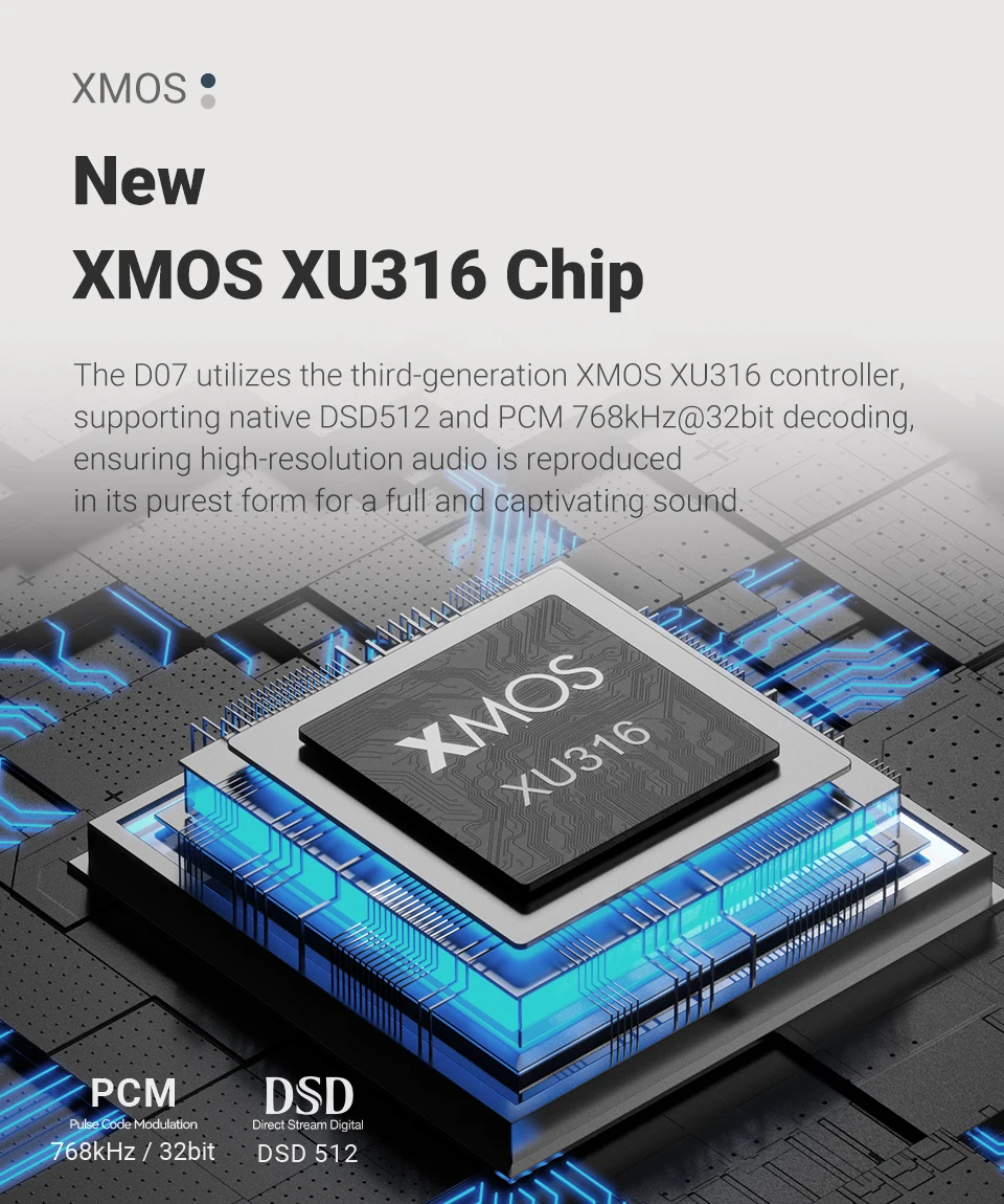 1.플래그십 칩셋 조합: AK4493SEQ, XMOS XU316, NE5532P 칩셋이 정밀한 디코딩과 안정적인 전송을 가능하게 합니다.