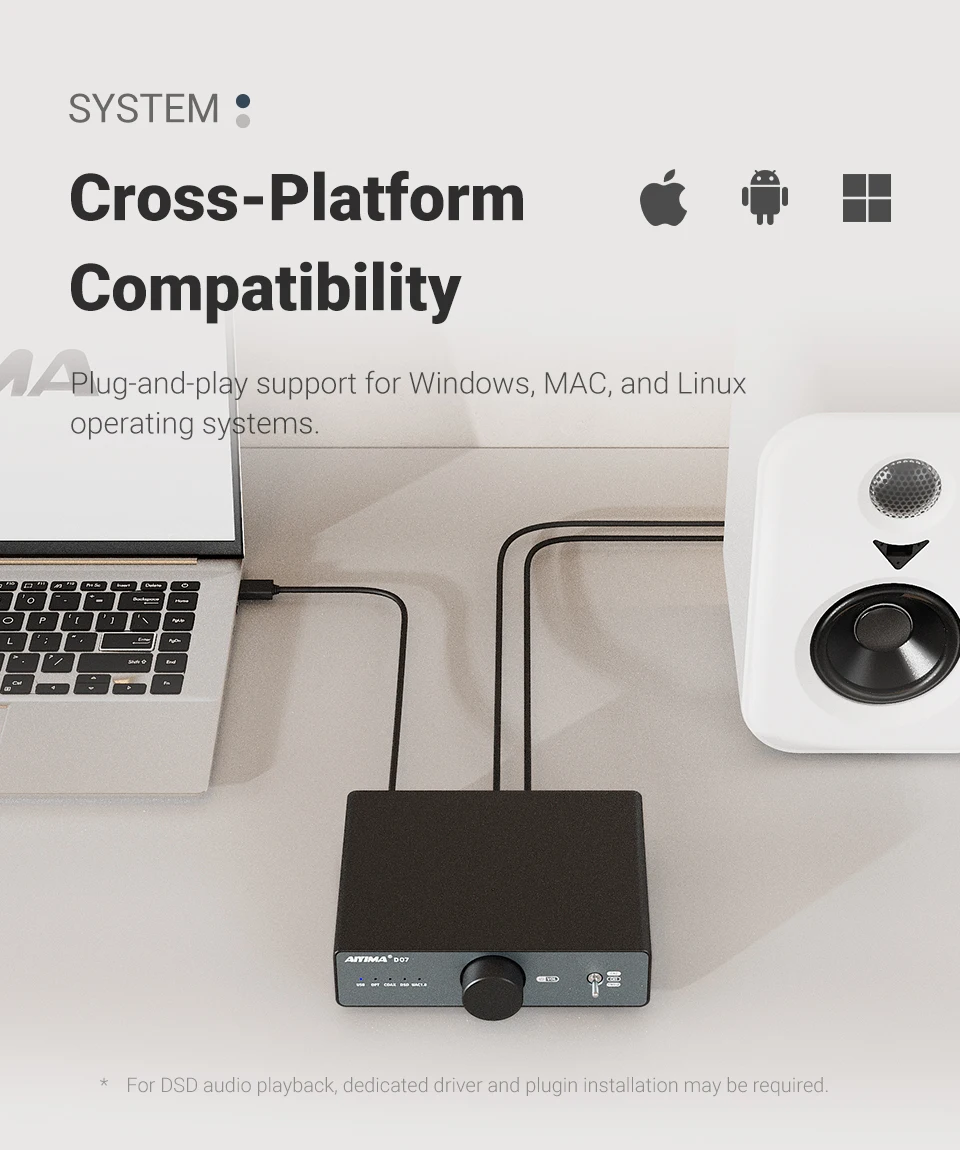 2.뛰어난 성능 매개변수: 0.0002%의 초저왜곡률과 118dB의 신호 대 잡음비로 매우 정확한 사운드 재생을 보장합니다.PCM 768kHz/32bit 및 DSD512까지 고해상도 음악 형식의 재생을 지원합니다.