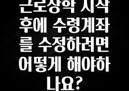 근로장학 시작 후에 수령계좌를 수정하려면 어떻게 해야하나요? 근로장학은 학생들에게 학비나 생활비를 지원하기 위해 마련된 중요한 제도입니다. 하지만 수령 계좌를 수정해야 할 필요성이 생길 수도 있습니다. 예를 들어, 계좌를 변경하거나 다른 은행으로 이전해야 하는 …