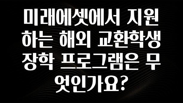 미래에셋에서 지원하는 해외 교환학생 장학 프로그램은 무엇인가요? 미래에셋은 한국의 대표적인 금융투자 회사로, 학생들에게 해외에서의 학습 기회를 제공하는 다양한 프로그램을 지원하고 있습니다. 특히, 해외 교환학생 장학 프로그램은 글로벌한 경험을 쌓고 싶은 많은 학생들에게 중요한 …